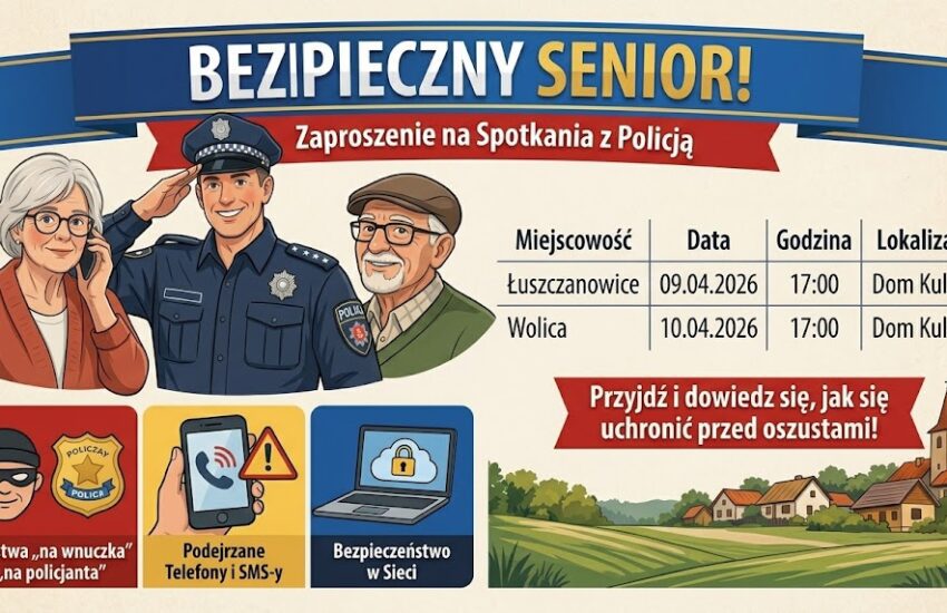 📢 Bezpieczny Senior: Zaproszenie na spotkania z Policją Drodzy Słuchacze Uniwersytetu Trzeciego Wieku, Szanowni Mieszkańcy naszej Gminy Kleszczów! Bezpieczeństwo nas